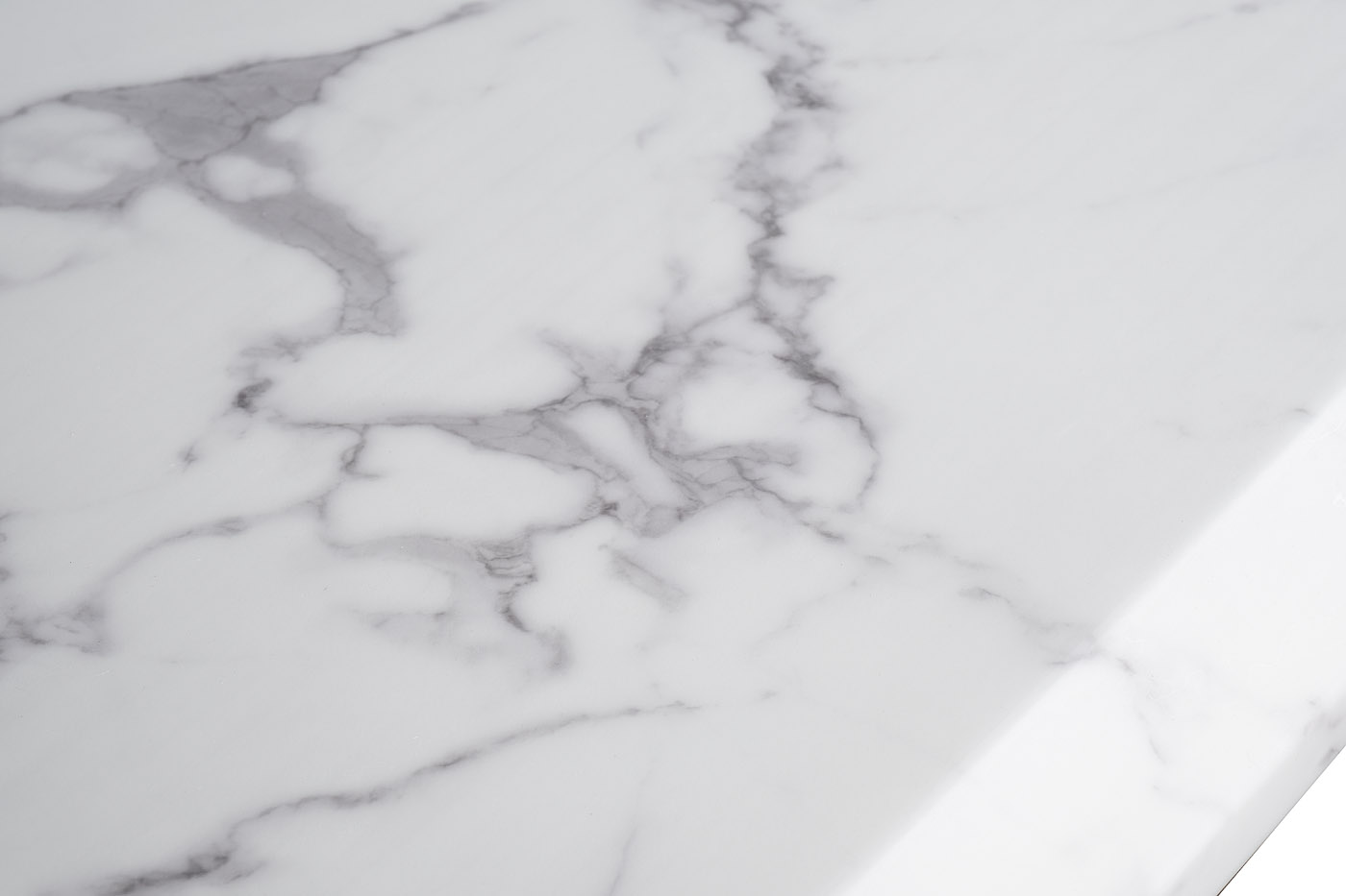 - Материал: столешница - иск.мрамор(МДФ+пленка), цвет белый; основание - нержсталь, цвет золото