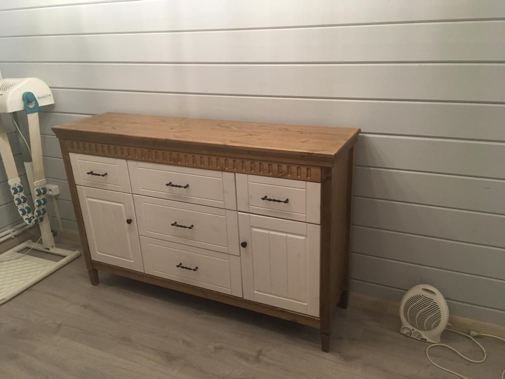 Материал - сосна, задняя стенка, дно ящиков - ДВП белого цвета.