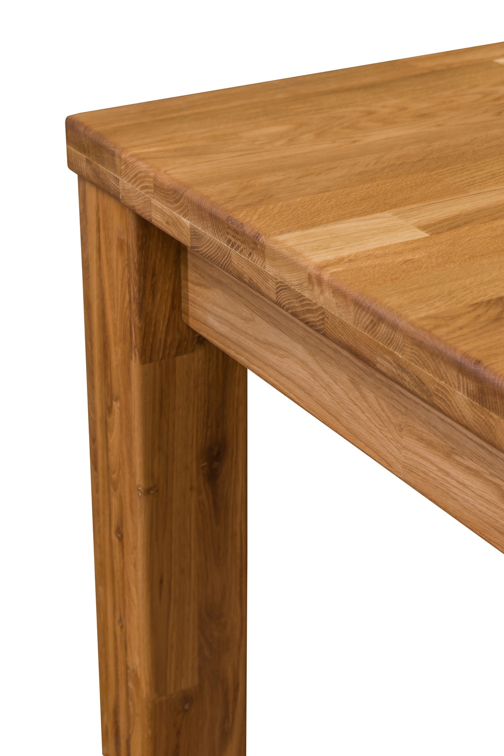 Стол изготовлен из натурального и долговечного материала – массива дуба, при этом сохраняется природная древесная текстура. Доступно шесть вариантов отделки: бейц-масло, дуб отбеленный, дуб паркетный, дуб венге, тёмная вишня и итальянский орех. Вы можете выбрать тот вариант, который лучше всего подойдёт к вашему интерьеру. Столик имеет устойчивые массивные ножки 90х90 мм.