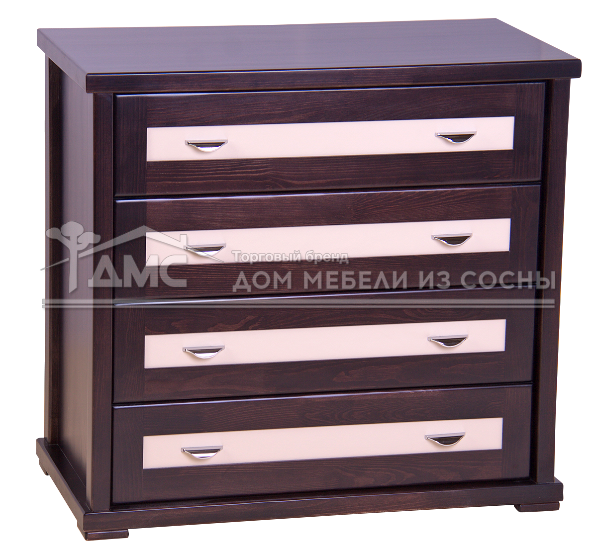 Дизайн комода «Премьер» сочетает в себе элегантность и практичность. Четыре вместительных ящика украшены белыми вставками с металлическими ручками, которые придают ему изысканный вид. Такой комод станет настоящим украшением вашей квартиры и подчеркнёт ваш вкус и статус.