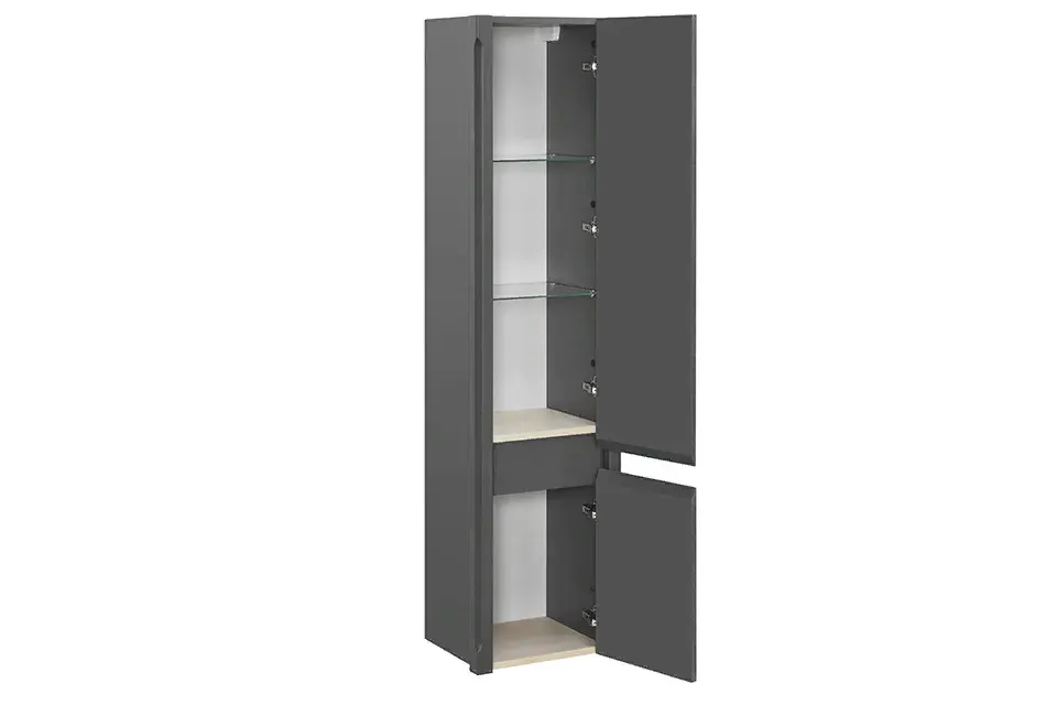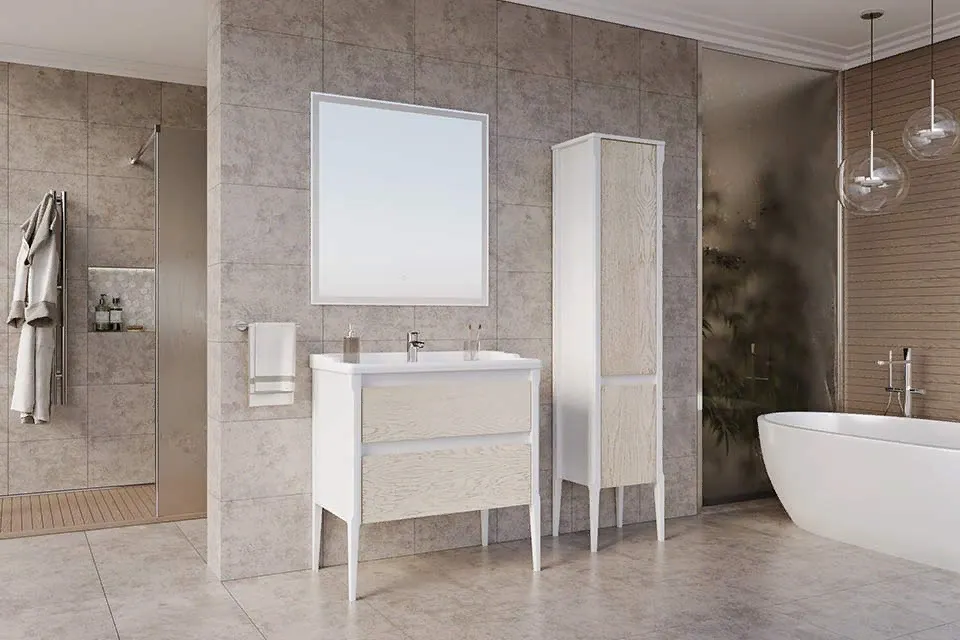 Коллекция мебели «Лорена» для ванной комнаты отличается фасадами без ручек, и стильными цветовыми решениями – Grigio или Благородный бежевый. Тумба и пенал предлагаются в двух вариантах, напольном или подвесном. Фасады, как и во всех коллекциях ASB-Woodline, выполнены из массива ясеня. Стенки ящиков и другие скрытые детали сделаны из МДФ.