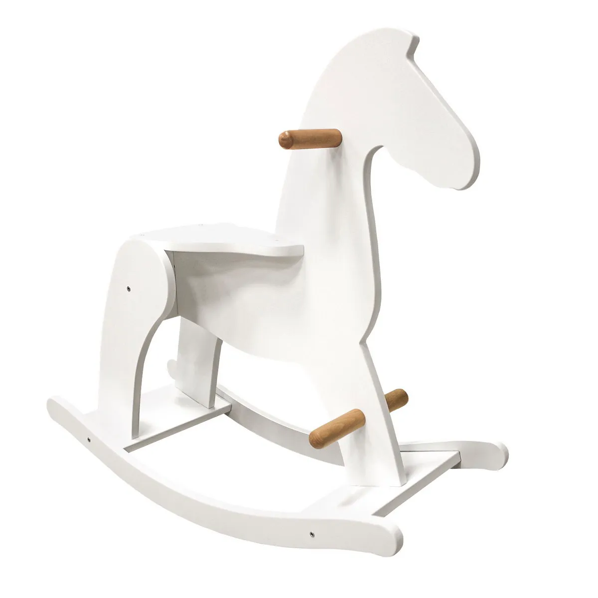 Детская лошадка-качалка из экологически чистых материалов — идеальный подарок для вашего ребенка! Основание выполнено из МДФ с белой эмалью, которая не содержит железа и абсолютно безопасна для малыша. Декоративные элементы из натурального дерева добавляют изделию особую привлекательность.