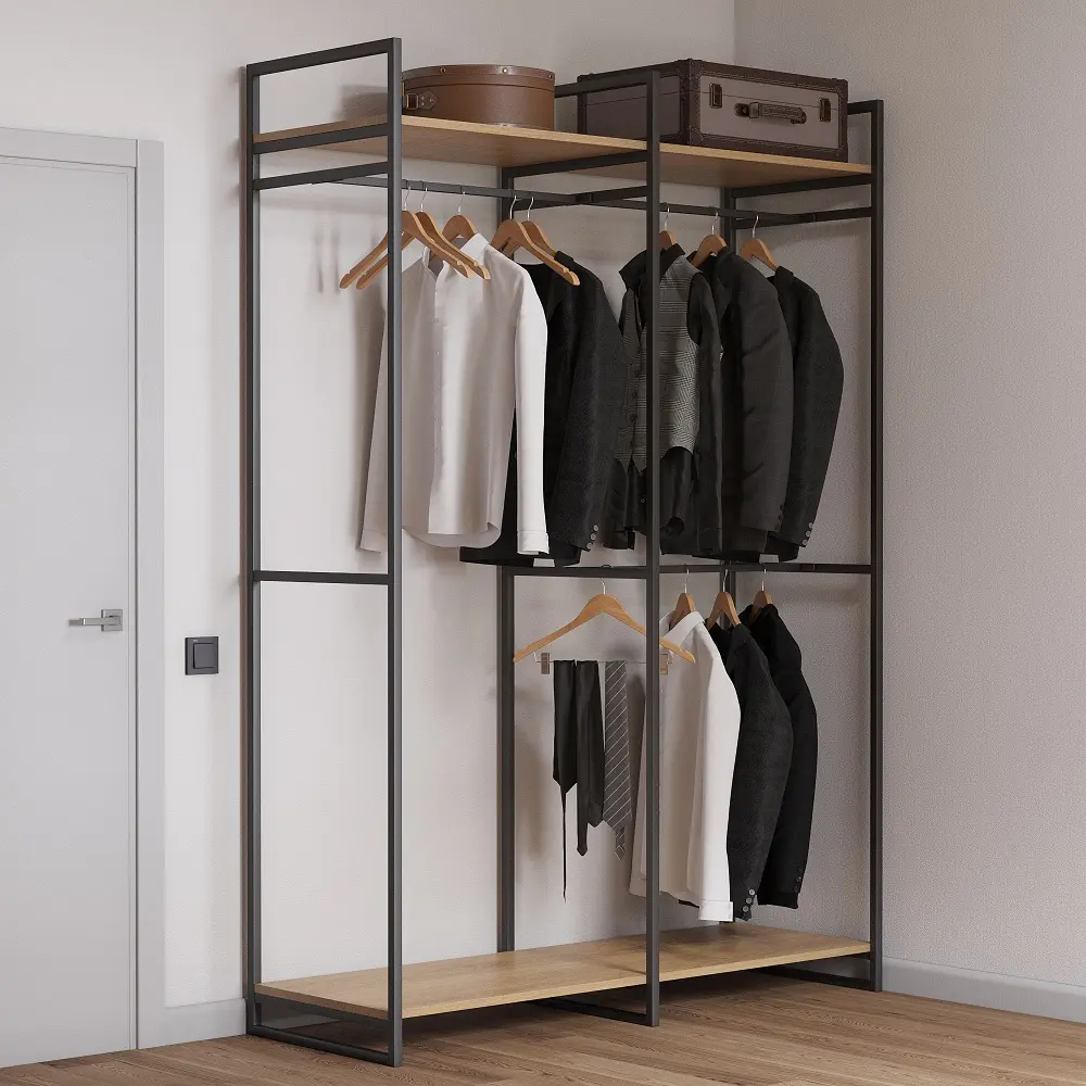 Гардеробный стеллаж в стиле ЛОФТ 02-02. Каркас выполнен из металлического профиля и окрашен в черный цвет. Деревянные элементы выполнены из массива сосны. На заказ, возможно изготовление всех деревянных элементов-из массива ясеня, дуба или бука, покрытые маслом, бесцветным лаком или эмалями. А металлический каркас изделия может быть выкрашен в любой цвет по RAL. Подробности и более точную цену можно узнать у наших консультантов.