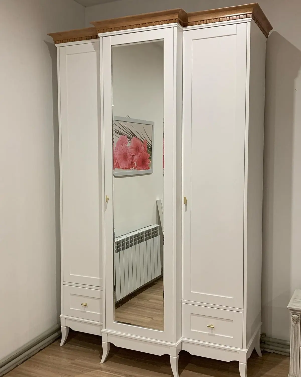 Зеркало расширяет пространство и делает шкаф визуально легче.