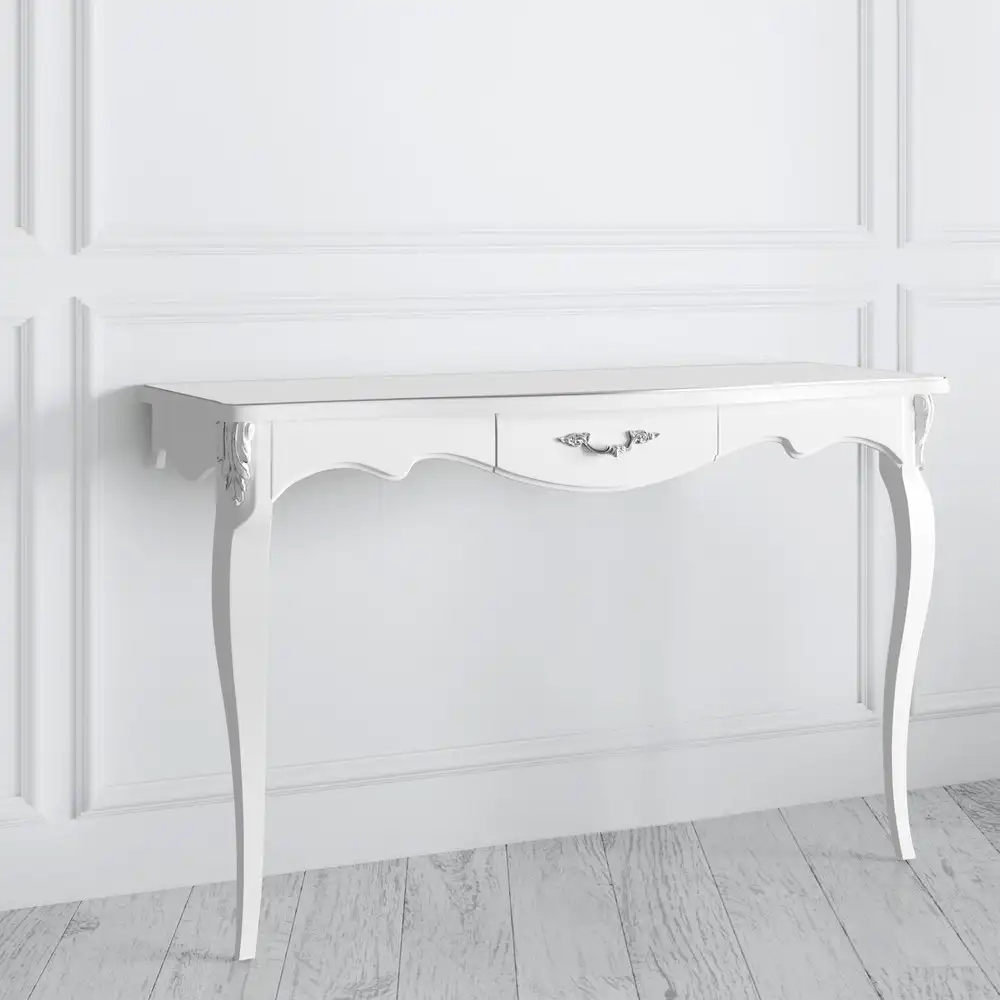 Предметы из коллекции Silvery Rome окрашиваются в белый цвет с серебряной патиной. На дверях и ящиках сделаны ручки-скобы и ручки-кнопки в виде цветочных бутонов, с состариванием. В коллекцию входит мебель для спальни, гостиной, прихожей – двухспальные кровати, прикроватные тумбы, бельевые и книжные шкафы, комоды, письменные и туалетные столы, скамьи и пуфы.