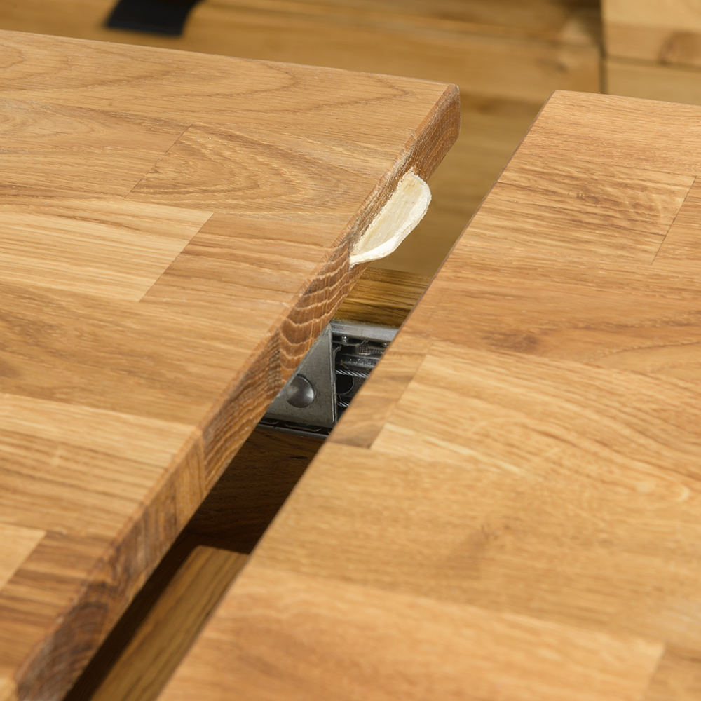 Доступно шесть вариантов отделки, на выбор: бейц-масло, дуб отбеленный, дуб паркетный, дуб венге, темная вишня, итальянский орех. Размеры стола (ШхГлхВ) 800х800х750 мм, ширина вставки 300 мм. Стол расширяется до 1100 мм, вес стола 28 кг. Раздвижной механизм шариковый, синхронный, со стопором. Поставляется в разобранном виде. Гарантийный срок – 1 год.