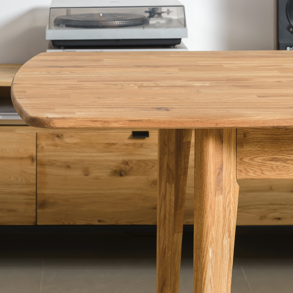 Раздвижной обеденный стол «Монти 800/1100» в скандинавском стиле изготавливается из долговечного природного материала – массива дуба. Стол отличается простым и стильным дизайном с высокими ножками, а, главное, вместительностью – за ним может разместиться до 6 человек.