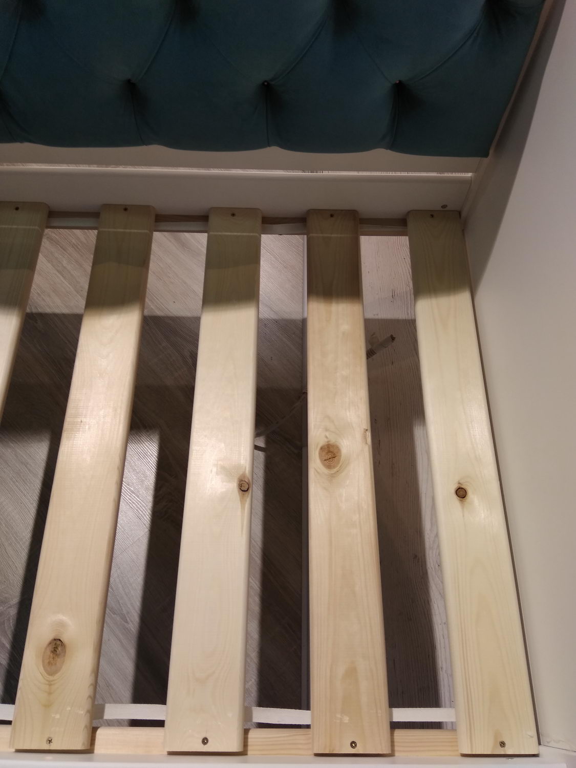 Деревянный настил идет в комплекте с тахтой. Матрас и чехол для него можно заказать отдельно, рекомендуемая высота матраса – 150 мм. Цена на сайте указана за изделие в бесцветном лаке. Стоимость может варьироваться в зависимости от выбранного покрытия. Также есть возможность заменить детали из массива на детали, изготовленные из МДФ, без видимых сучков и текстуры дерева.
