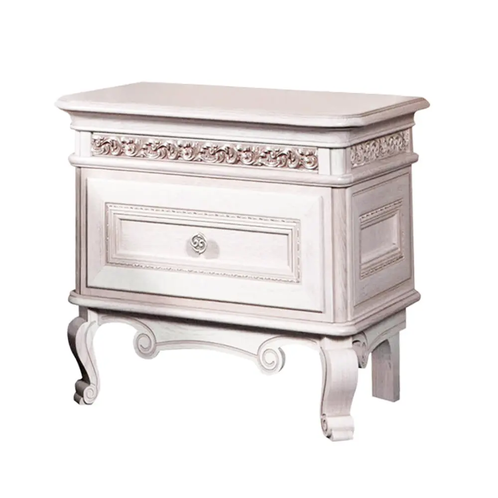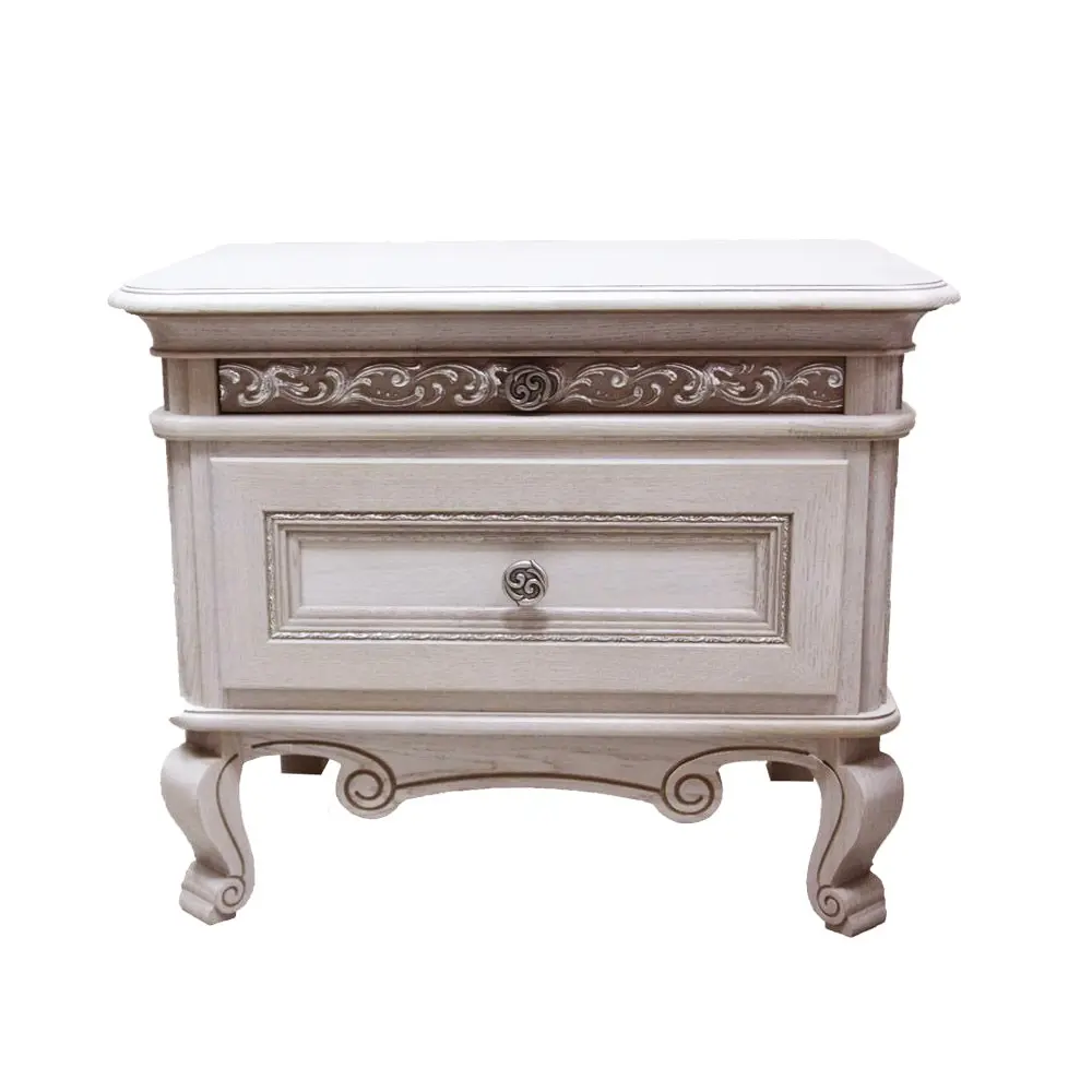 Тумба «Фуджейра» станет настоящим украшением вашей спальни благодаря своему роскошному дизайну. Её фасады украшены резным декором, который придаёт ей элегантность и шарм. Гнутые резные ножки делают тумбу лёгкой и воздушной, а декорированные ручки с эффектом состаривания добавляют ей особый шарм и очарование.